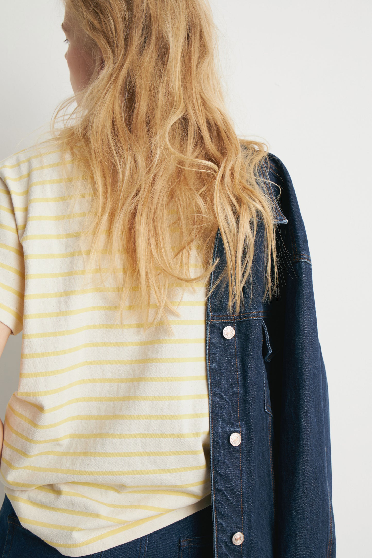 Straight-fit T-shirt in a soft striped cotton with a round neck and short sleeves.