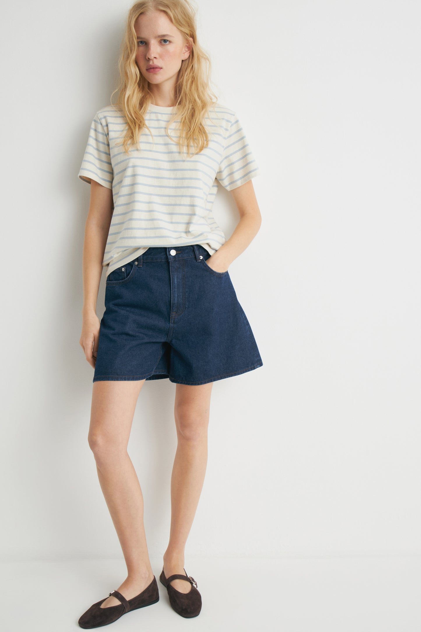 Straight-fit T-shirt in a soft striped cotton with a round neck and short sleeves.